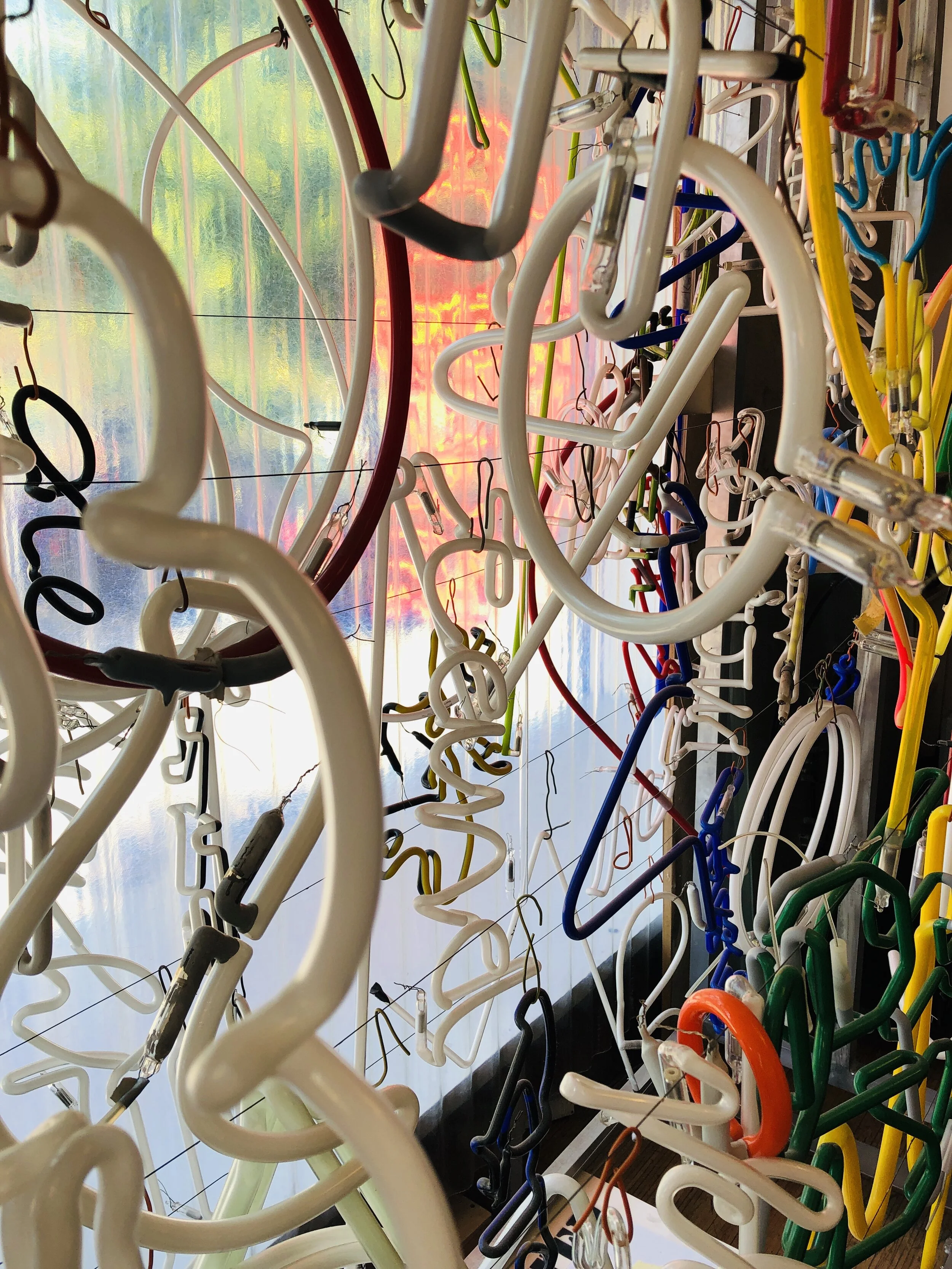 Die mit Bedacht sanierten Räumlichkeiten der Werbeagentur WE LOVE\TBWA im 3. Wiener Gemeindebezirk mit Ausblick in den Arenbergpark werden durch eine 15 Meter lange Neonlichtinstallation erhellt. In lässiger Handschrift entworfen, verwandelt sich die leuchtende Linie in die Worte “we love”, das Credo und der Name der Agentur schwebt über den kreativen Köpfen der Agenturmitarbeiter und Kunden. Der dimmbare Schriftzug führt zu den verschiedenen Büros und Besprechungsräumen und zoniert die Räumlichkeiten.